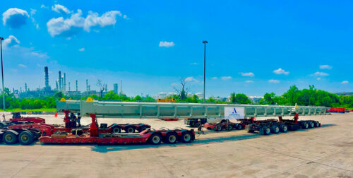 The reclaimer booms were then transported and delivered using a bunk and dolly set up from Houston all the way up to site. Our experience ensured that the over the road portion was smooth – once it got going.