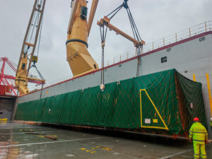 Upon arrival in Erie, both cold boxes were directly discharged onto a deck barge for the final leg of their journey to the project site.