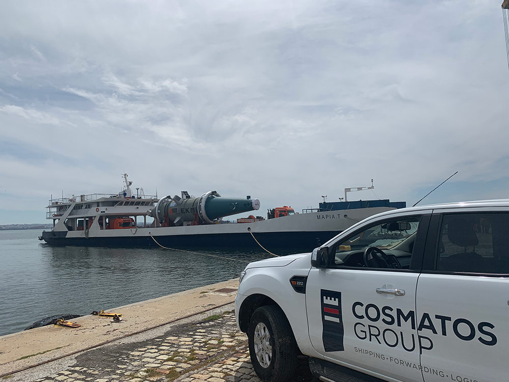 The Cosmatos Project Cargo Team, member to the Worldwide Project Consortium (WWPC) for Greece, managed to pull together a quite challenging transport from ex works till FOB onto a small chartered ferry of two heavy and outsized components: