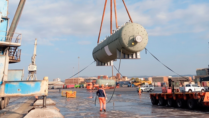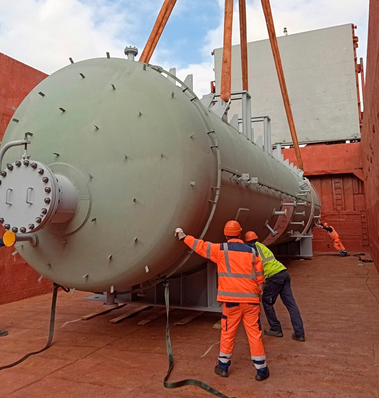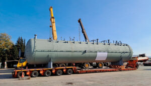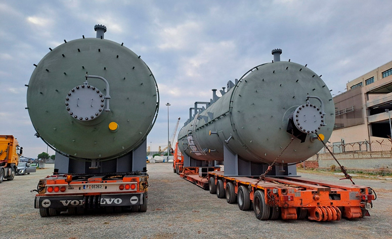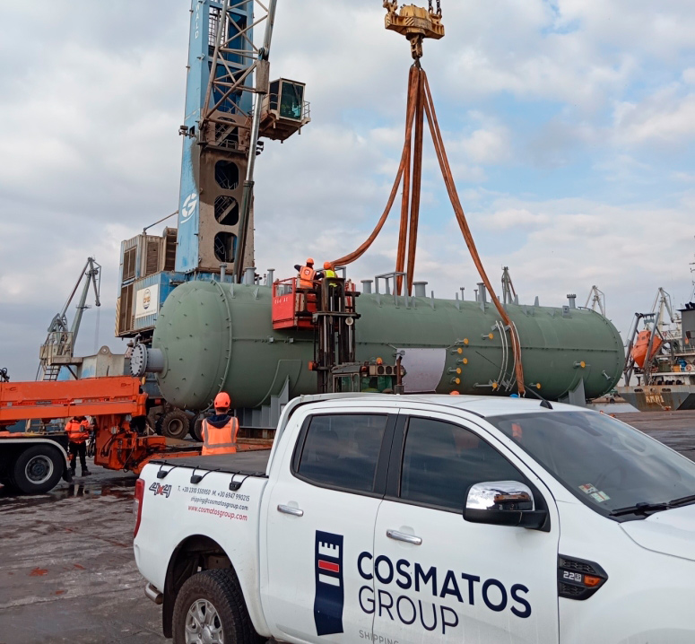 Cosmatos Group took care of transporting and loading of two pressure vessels, each measuring 19.99 x 3.93 x 4.77 meter and weighing 60 ton.