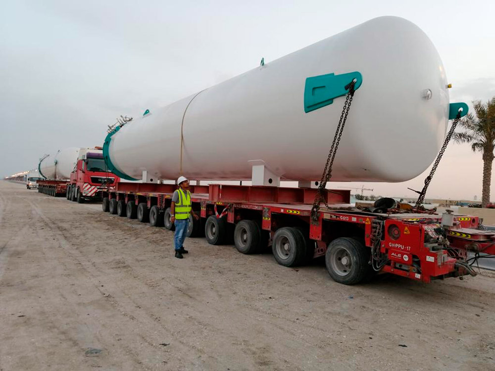 The shipment consisted of 2 x CO2 tanks and each tank had dimensions of 18 x 4.2 x 3.5 m and a single weight of 45 ton.