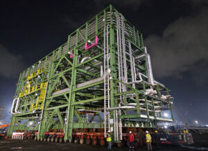 The internal roads at the facility were narrow, making it challenging to manoeuvre these giant modules through confined areas.