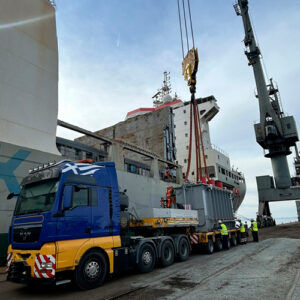 Cosmatos Shipping took care of the ship’s husbandry, the unwelding and unlashing operations, the stevedoring and cranage as well as part of import customs formalities. The company also arranged for the temporary storage of the main transformer at the Port open area as well as the accessories to a covered area.